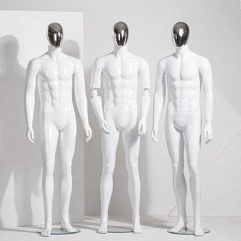 عارضة أزياء رجالية عالية الجودة برأس مطلي بالكهرباء لكامل الجسم من البلاستيك ، عارضة أزياء للبيع بالتجزئة